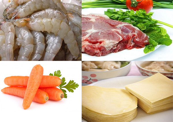 Chuẩn bị nguyên liệu làm hoành thánh gồm có
